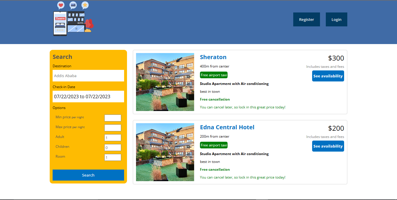 Hotel Reservation using MERN is a modern web application that allows users to effortlessly book hotels online. Powered by the MERN stack (MongoDB, Express, React, Node.js), this seamless platform provides real-time availability, secure payments, and personalized recommendations for a delightful booking experience.